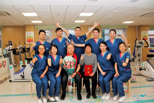 2019年3月26日上午,他如往常一般完成自己常規(guī)的心臟康復(fù)有氧運動訓(xùn)練后,中心為李先生精心準備舉行了溫馨的慶祝儀式。