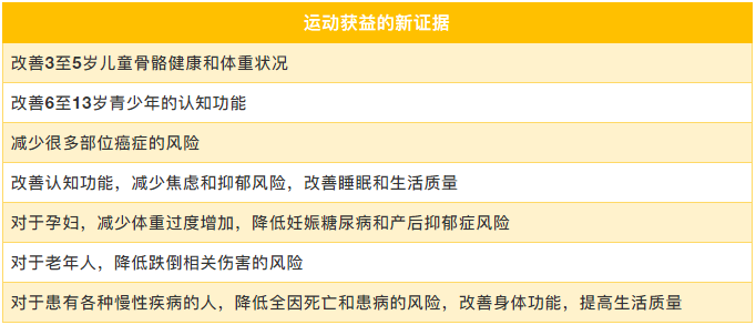 指南指出,運(yùn)動(dòng)對健康的好處有了新的證據(jù),包括: